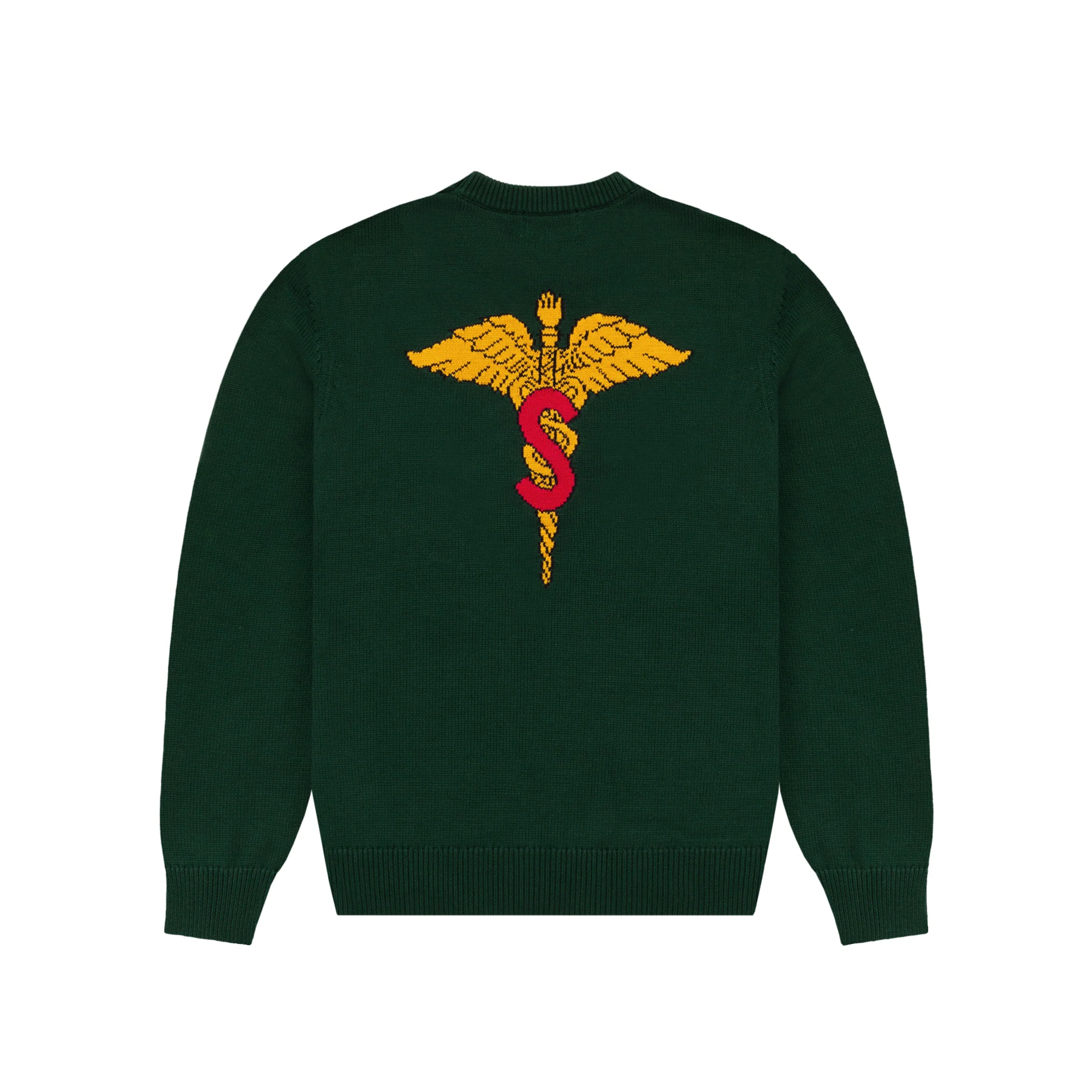 Intarsia knit graphic on front and back.